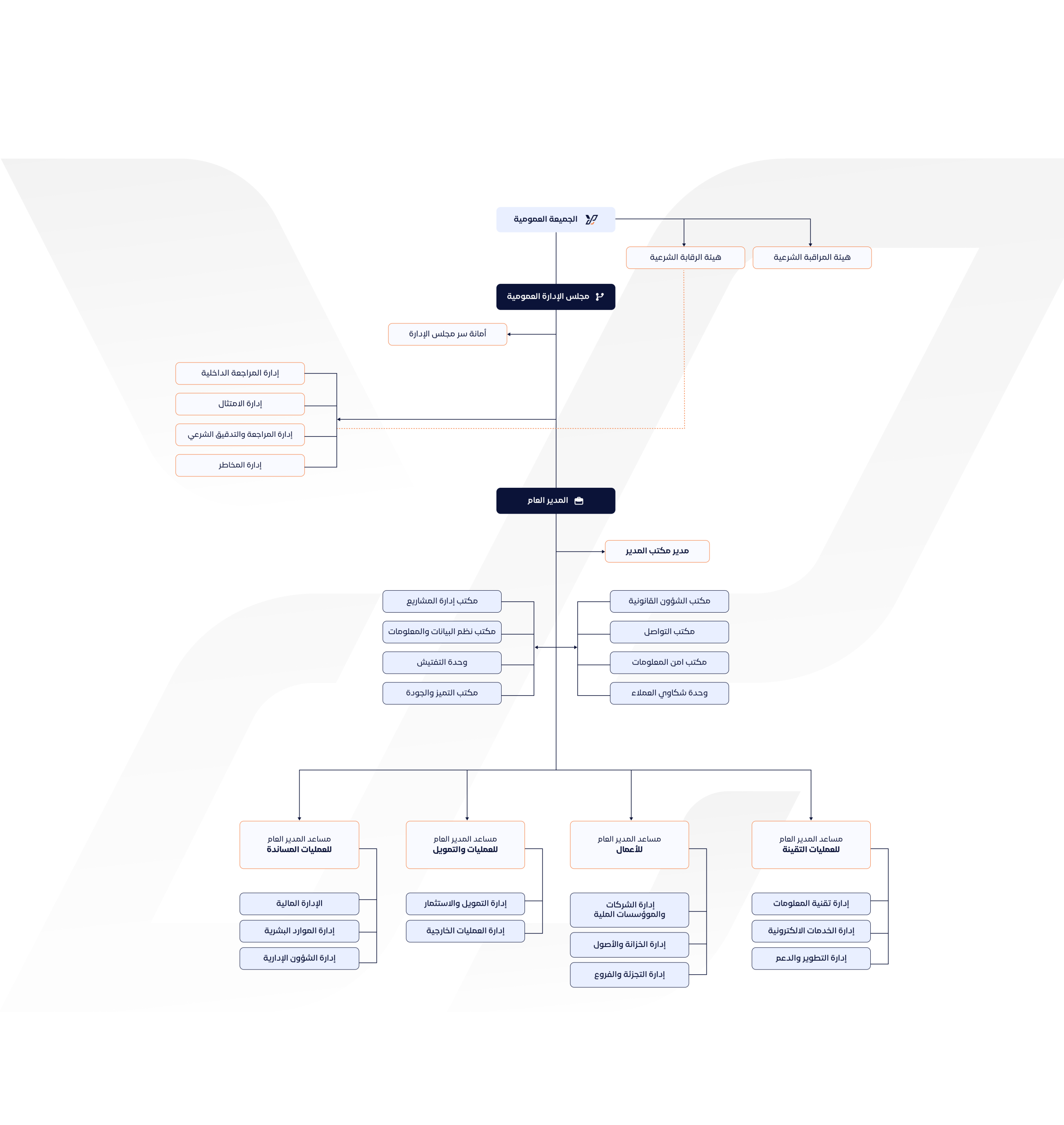 Learn about the organizational structure of Al-Yaqeen Bank, which shows the various departments and sections that contribute to providing our banking services with the highest level of efficiency and quality.